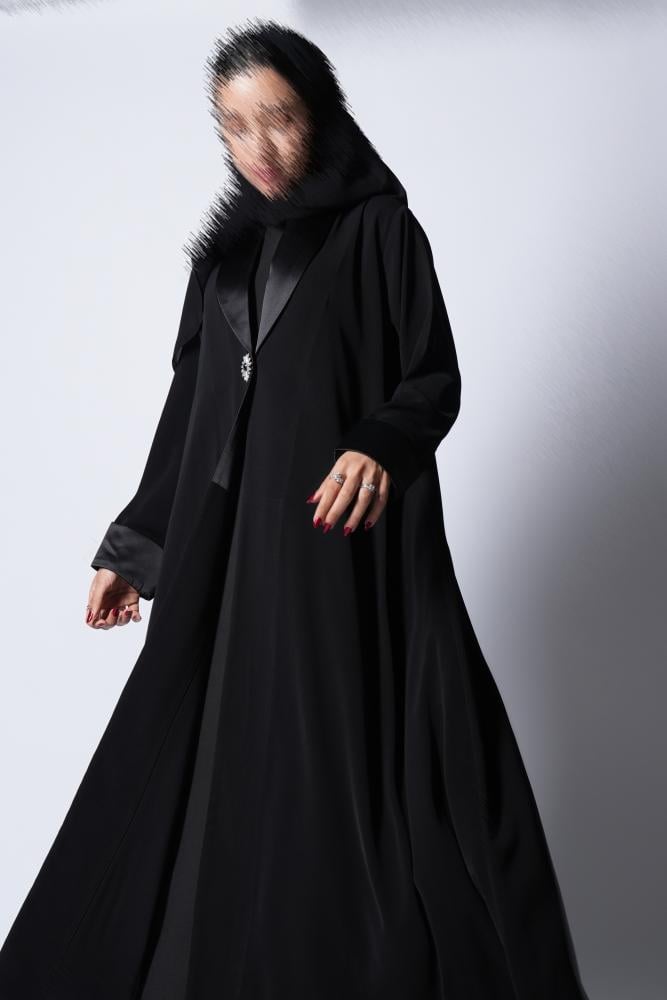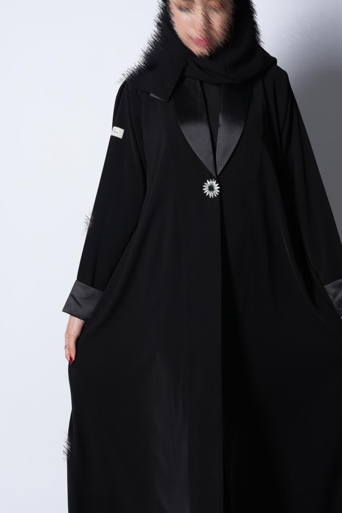 عباية فاخرة مصنوعة من قماش كريب ملكي كوري ، بتفاصيل أنيقة من قماش التفته اللامع في الأكمام والياقة، تضيف لمسة أنوثة وفخامة. تأتي بقصة “نص كلوش” انسيابية تمنحك حرية وأناقة في كل خطوة. مزينة ببروش فاخر يمكن تركيبه أو إزالته حسب الرغبة، لتناسب ذوقك وتمنحك أكثر من خيار لإطلالتك